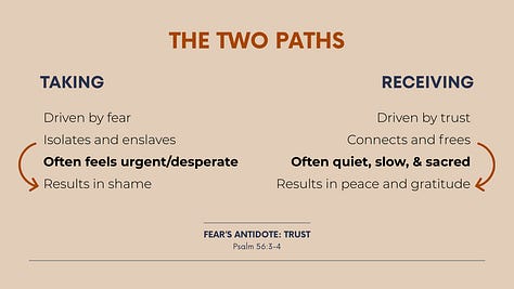 Taking vs. ReceivingWhy what brings comfort makes chaos Ben DerrickMay 02, 2025Share0:00-25:32Audio playback is not supported on your browser. Please upgrade. Thanks for listening! Subscribe for free to receive new posts and support my work.SubscribePreviousNext